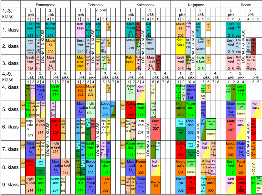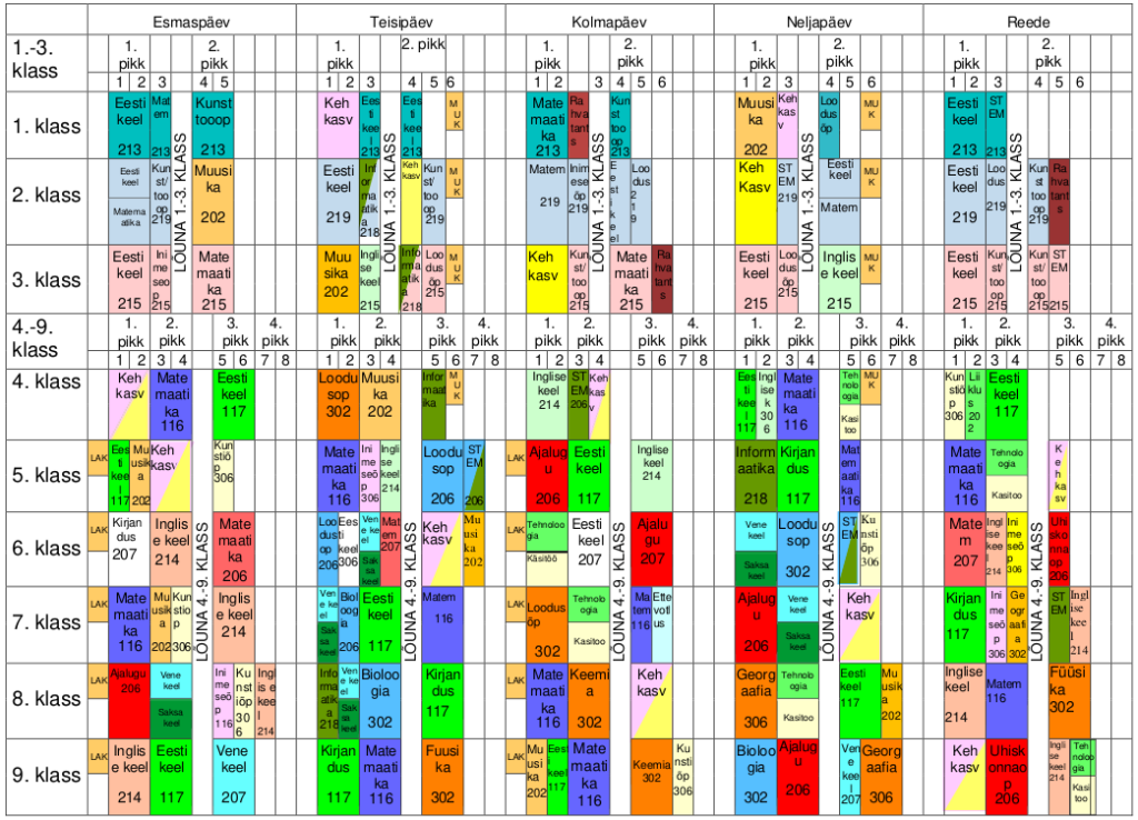 NB! Kuna hetkel esineb tunniplaani süsteemis kellaaegade vigu, vaadata vaid tundide järjestusi!